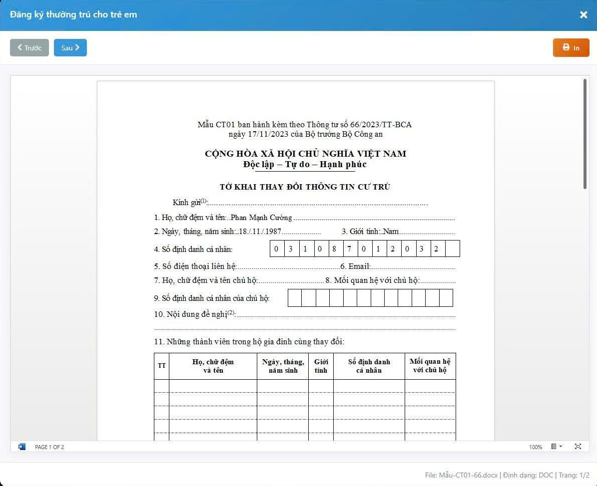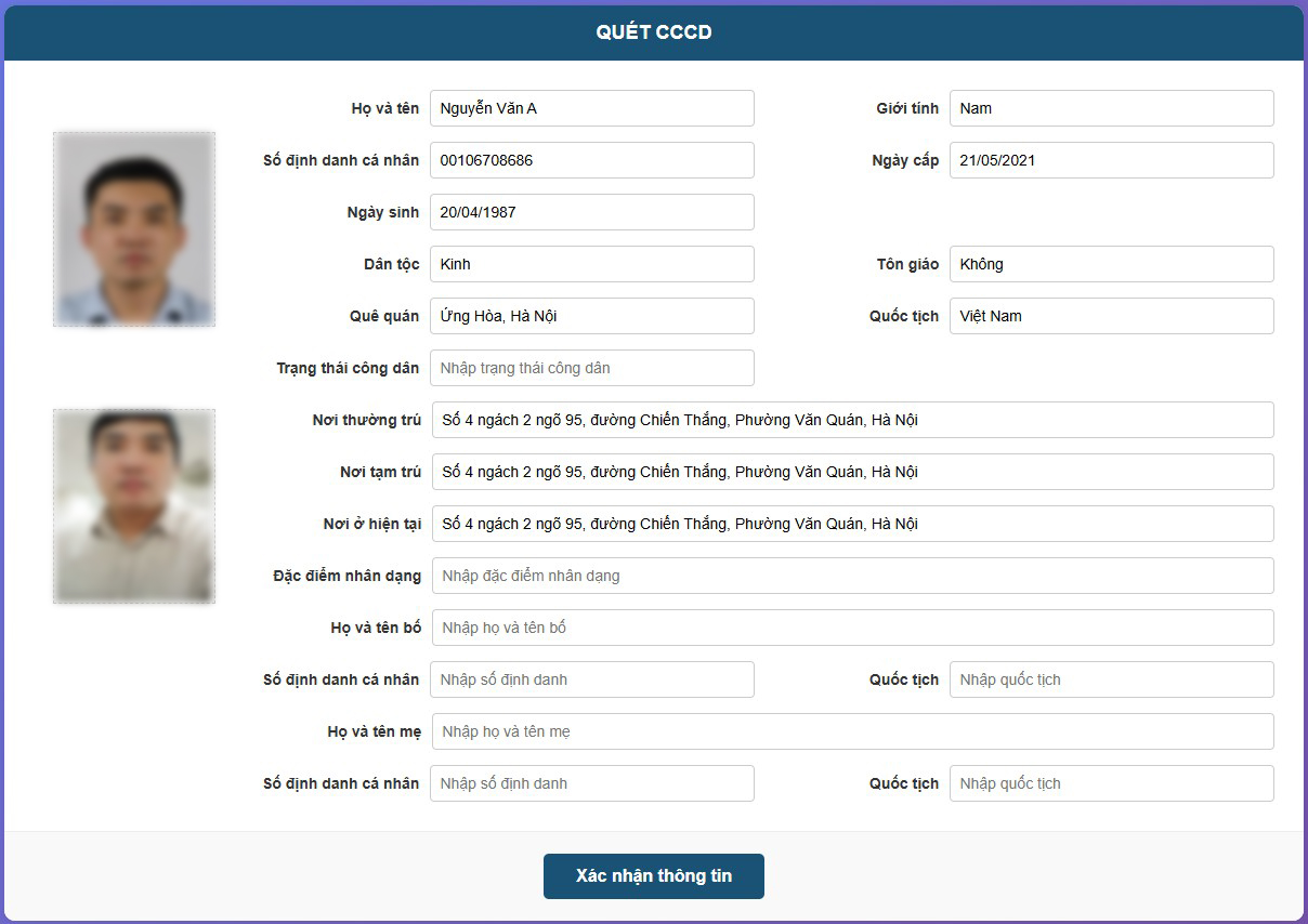 Ngay lập tức, toàn bộ thông tin cá nhân được tự động nhận diện và điền sẵn vào các biểu mẫu hành chính.