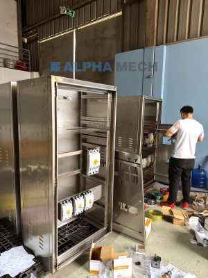 Tủ điện inox được sử dụng trong các môi trường yêu cầu cao về độ bền, khả năng chống ăn mòn và tính thẩm mỹ. Tại Alpha Mech, tủ điện inox được sản xuất trực tiếp tại xưởng, kiểm soát từ khâu gia công vỏ đến hoàn thiện sản phẩm.